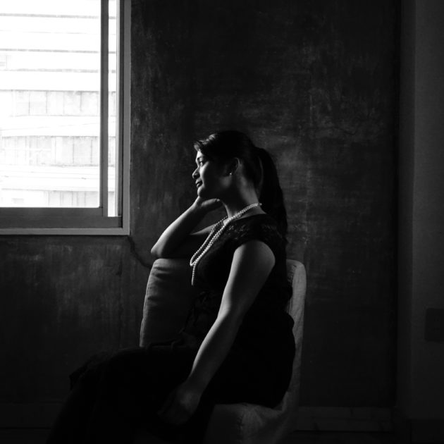同じ室内でも場所や向き、ポージングを変えると、写真の見え方も変わっていきますし、モノクロの世界で覗くと、いつもとは違う視覚で撮影を楽しめます。